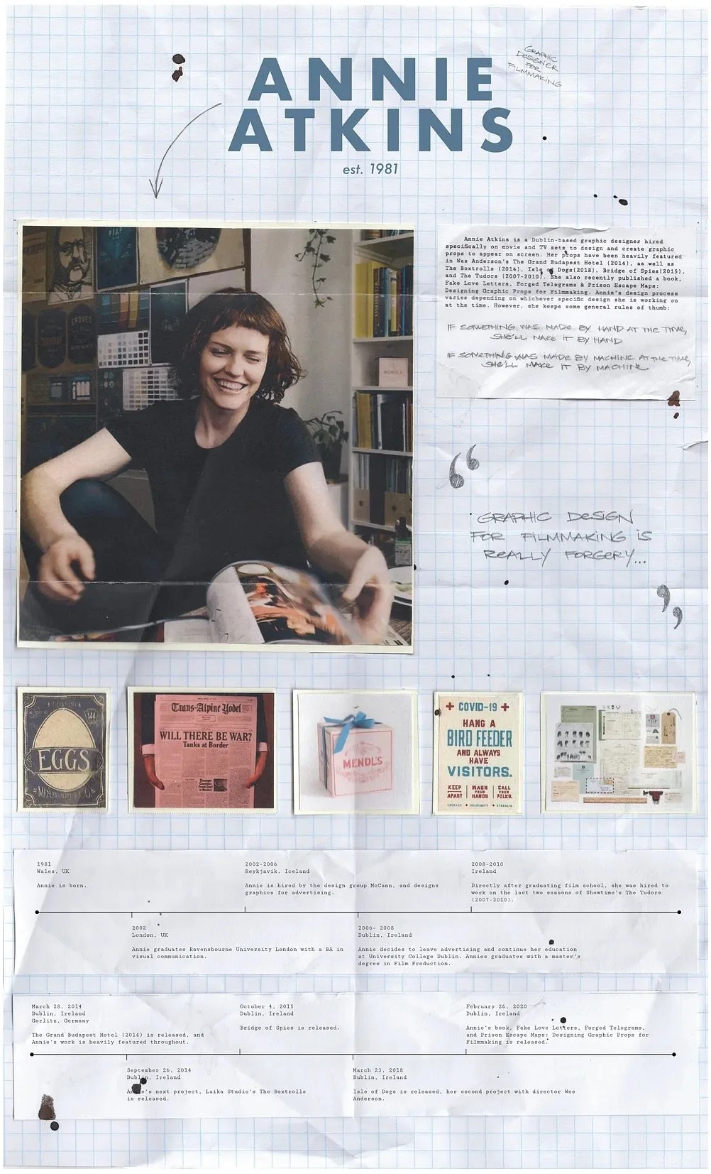 Work from the past constantly informs the future of design. I studied the work of Annie Atkins, Graphic Designer for Film, one of my favorite designers working today. Through research and copywriting, I crafted three pieces: a poster, a booklet, and an animated video as unique interpretations of Annie’s work.